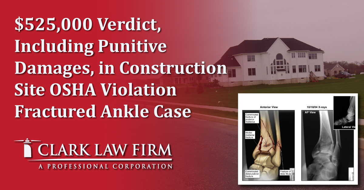 $525,000 Verdict, Including Punitive Damages, in Construction Site OSHA Violation Fractured Ankle Case