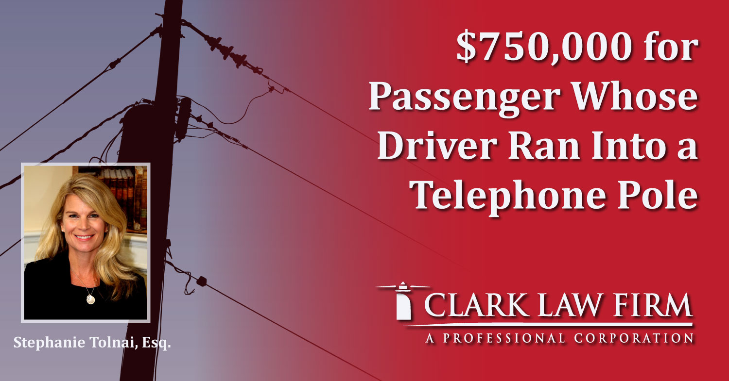 $750,000 for Passenger Whose Driver Ran Into a Telephone Pole