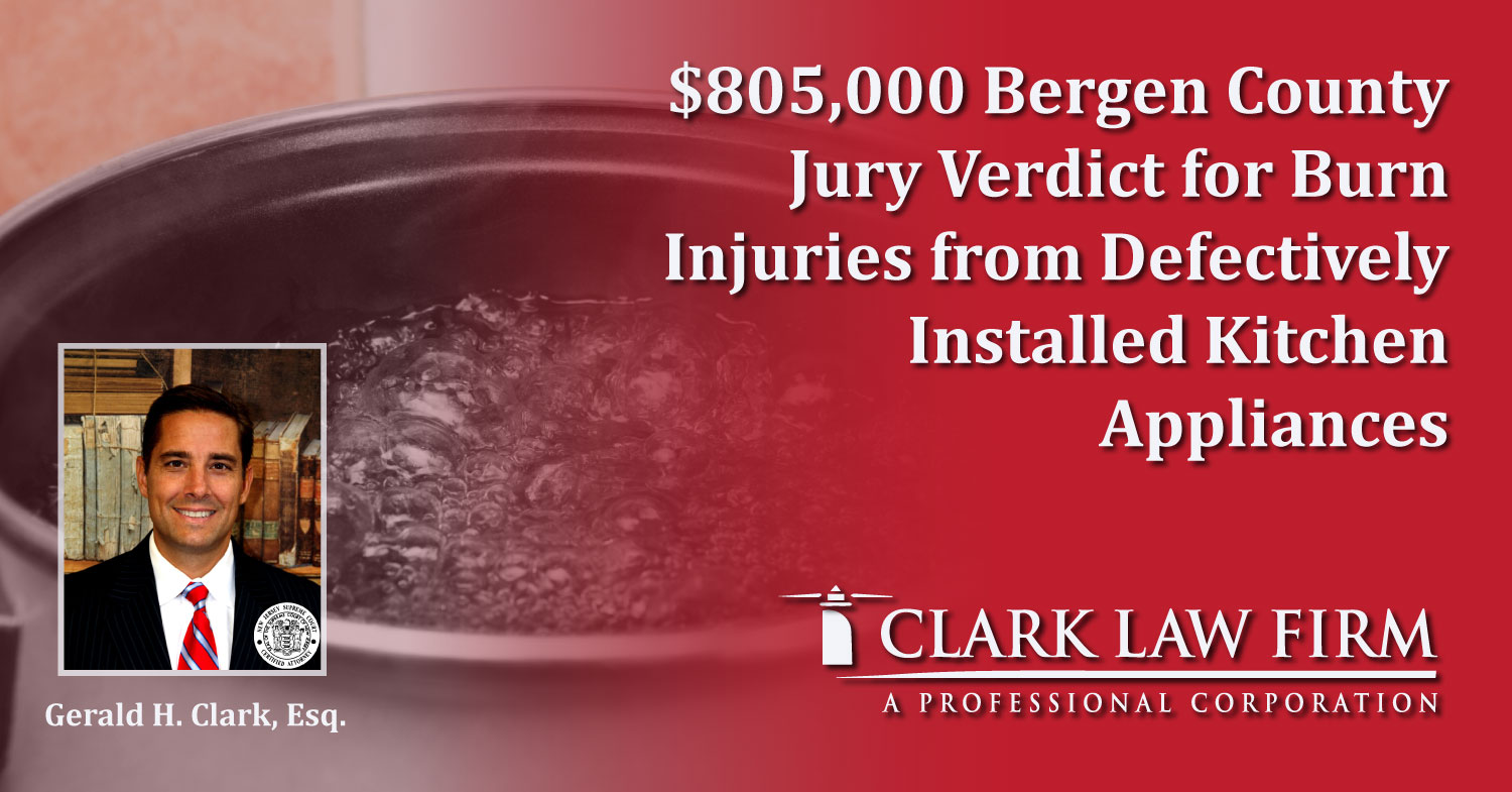 A Bergen County jury held a Teaneck appliance retailer accountable for improperly installing a microwave oven and cooktop against the manufacturer’s safe installation rules which caused second degree burns to a Ridgewood mom. Gerald Clark, Esq. represented the mom at trial.